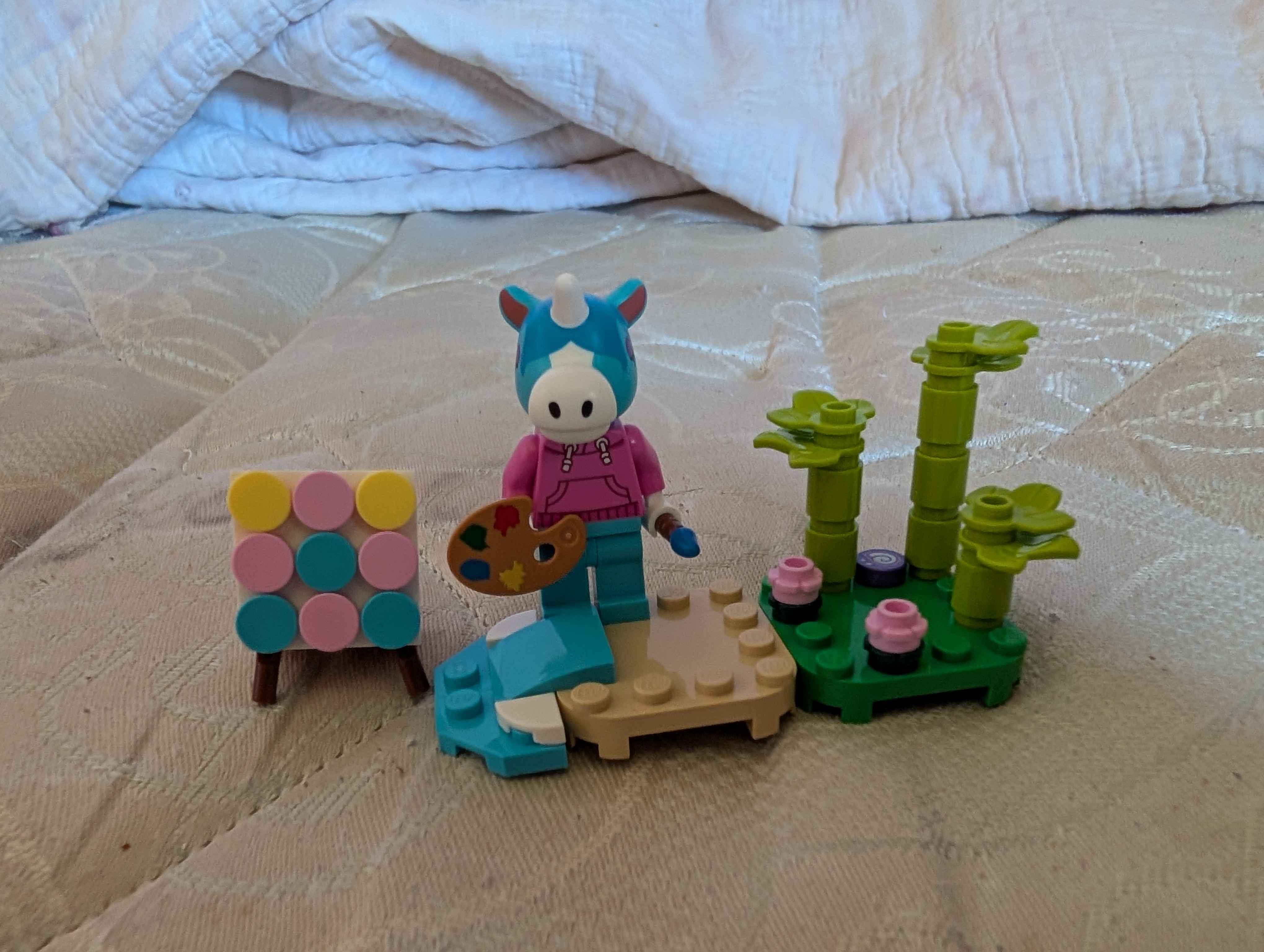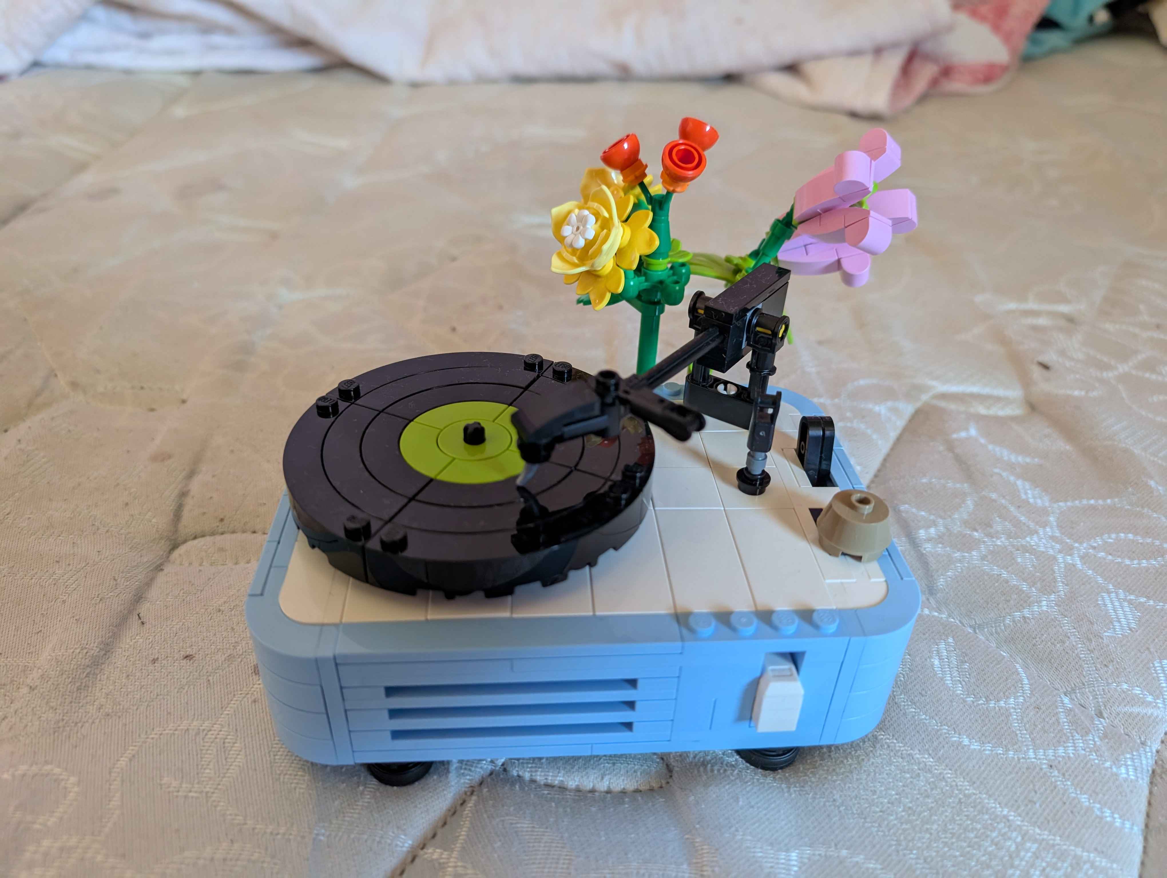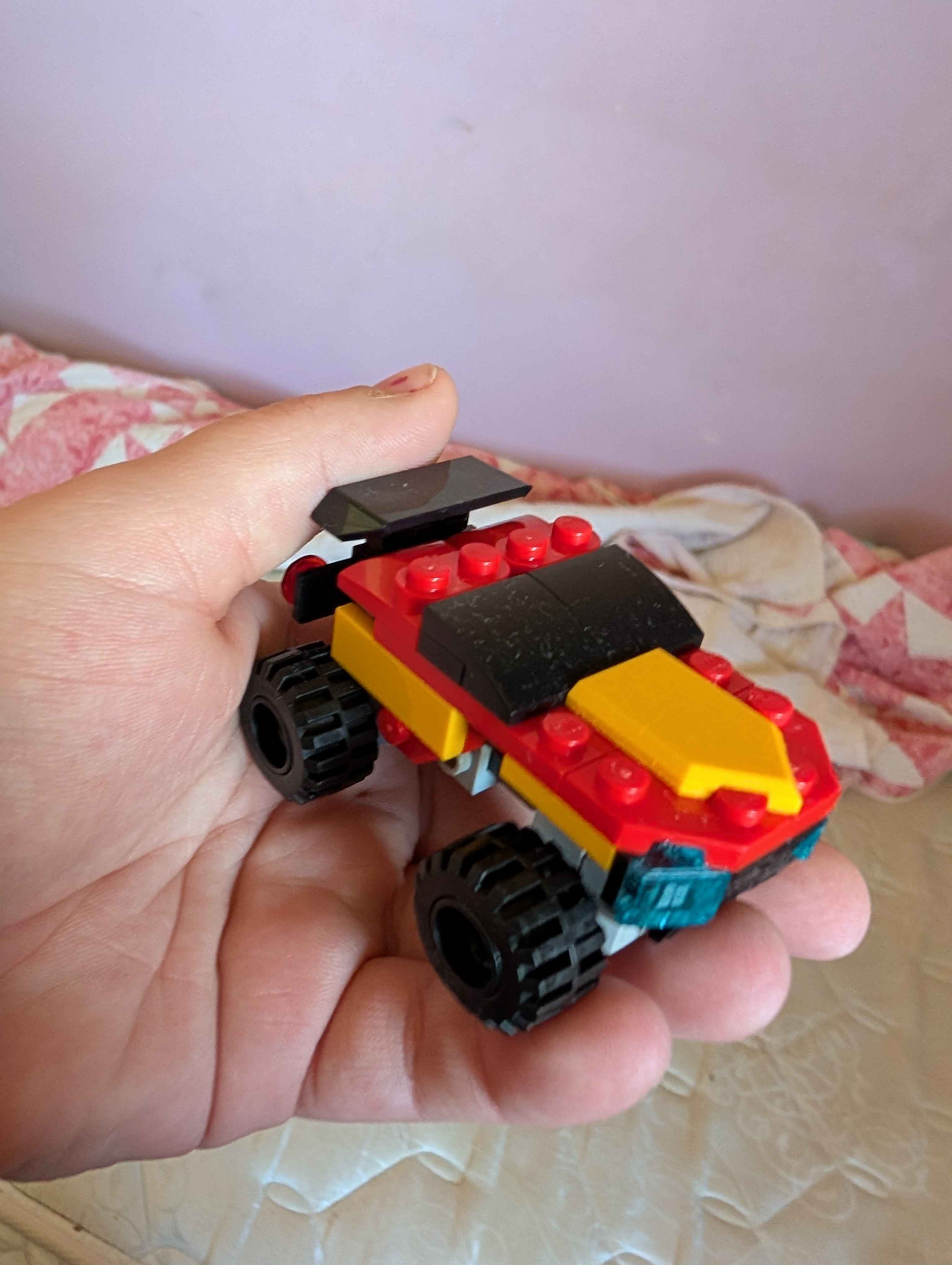 A grey camera with multiple functions, the top bits all spin and click into place.The inside of the camera, it swings open to reveal a set of film with a series of photos on it.Came from the same set as the camera, I like it because you get to display all the clear sticker bits.A better shot of the little television.My first ever set! The paper bit slides and spins, and the typewriter clicks like a keyboard.Came from the same set as the typewriter, hence the flowers.Didn't "properly" finish this one but I got the main bit and stand done, and thats enough for me.My fave floral build, displayed in a vinegar bottle in the living room.My first Animal Crossing themed set! I love it's simplicity and how it came with a minifig despite the size.The name of the minifig swayed me to purchase this one, IYKYK. I added little cherries to the tree for pizzaz.Camping set! I love how customizable this one is, and how the minifig looks like it is jumping.Another look at the Animal Crossing camping set.I love building and rebuilding this one, its my largest Animal Crossing set and came with many little pieces.Another shot of the house. A fun thing about this set is that you can change out the windows.The inside is also customizable! I love playing with the internal features.A friends brand flower set, my favorite part is the sunflower.A little dollar store racecar.This was tricky to build! It's my first technic piece, it came out a little weird, but I'm satisfied.TTTTTTTT